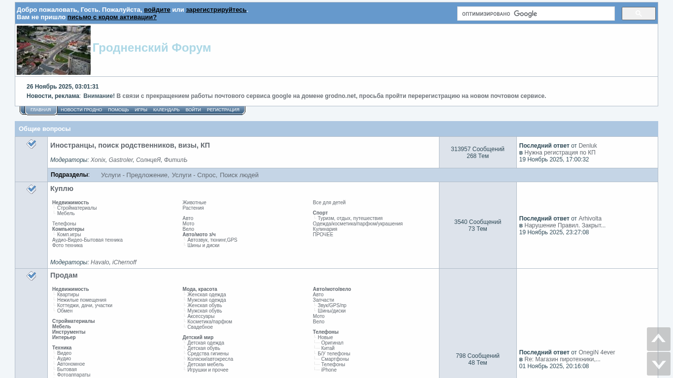 | Ключевые слова | Гродненский Форум - Главная страница гродно форум гродно гродненский форум городской форум куплю продам купить в гродно новости гродно жители гродно гродненцы grodno forum grodno grodno forum forum.grodno.net |