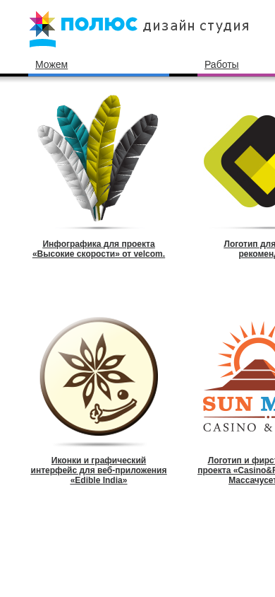 | AI-анализ | This online resource is a graphic design studio named Полюс дизайн студия. It provides services for creating logos, corporate identity, and print advertising, as well as polygraphy. The studio is based in Минск, Belarus. The website showcases projects such as infographics for the 'Высокие скорости' project by velcom, a logo for 'velcom рекомендует', an illustrated presentation of the 'Casino&Resort' investment project in the state of Массачусетс, USA, a calendar for the company 'Алмиэр' (2013), icons and graphic interface for the 'Edible India' web application, a logo and corporate identity for the 'Casino&Resort' investment project in the state of Массачусетс, USA, a logo and corporate identity for ' |