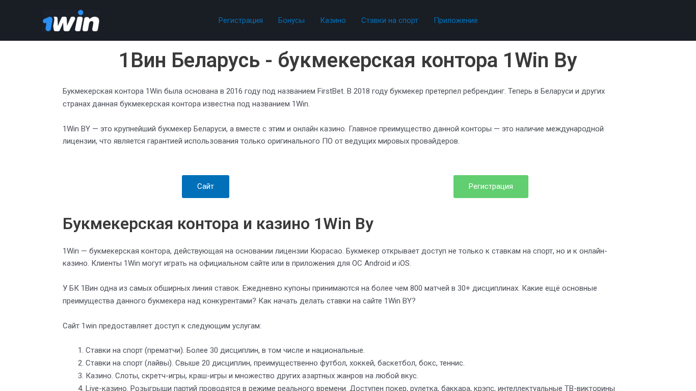 | Название / Заголовок | 1Win By букмекерская контора - официальный сайт 1Вин Беларусь |