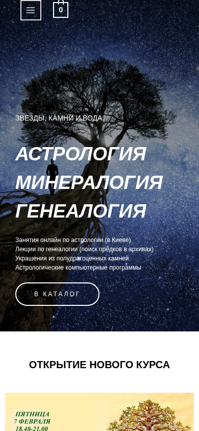 SEO-описаниеЗвезды, камни и вода Астрология минералогия генеалогия Занятия онлайн по астрологии (в Киеве) Лекции по генеалогии (поиск предков в архивах) Украшения из полудрагоценных камней Астрологические компьютерные программы В Каталог Открытие нового курса Выставка товаров Брошь-амулет Лунный котик 175 руб. В корзину Колье Алма 112 руб. В корзину Распродажа! Родословие — полный курс 375 руб. 340 руб. В корзину Консультации … Главная Читать полностью »