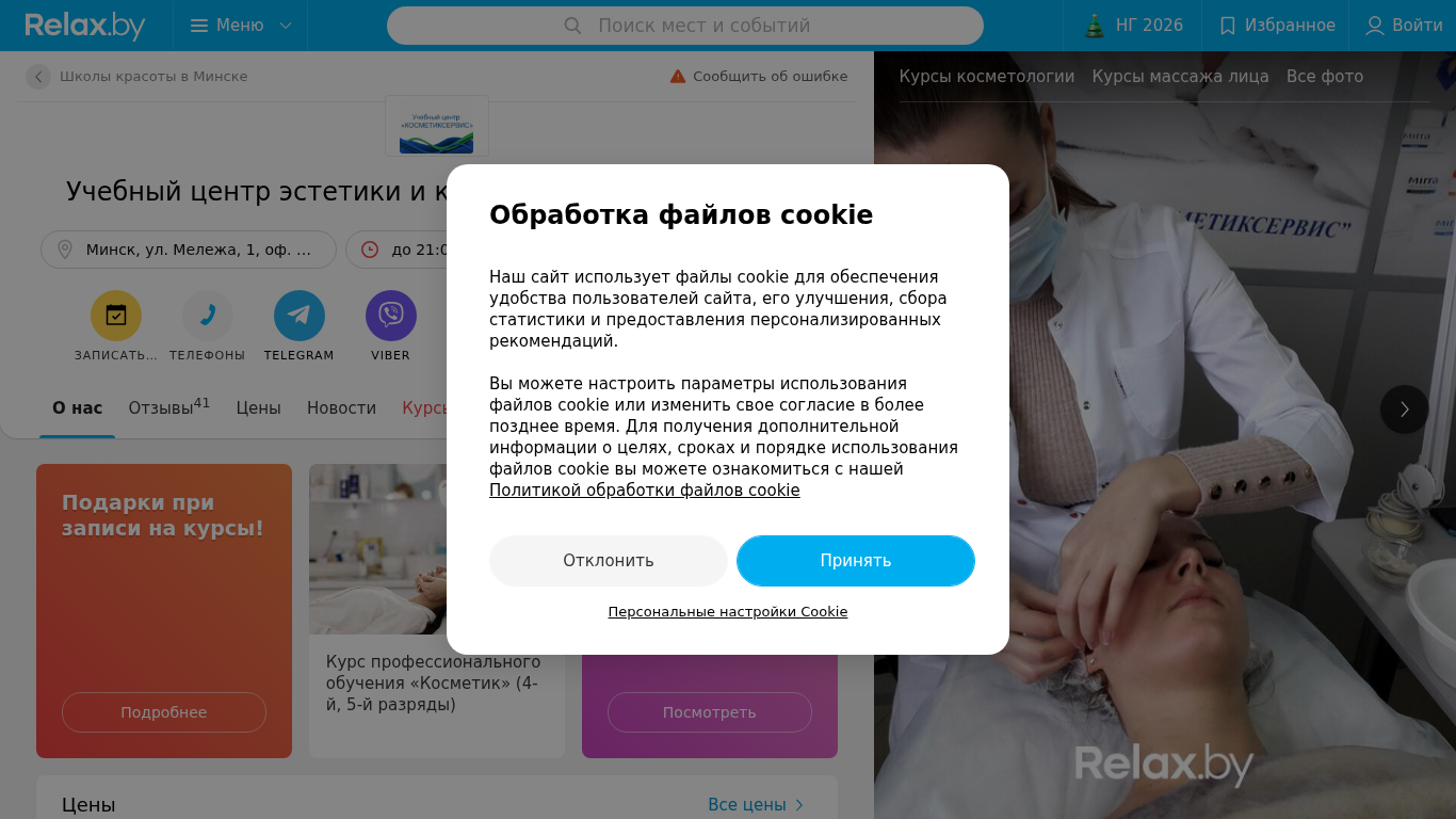 | SEO-описание | Учебный центр эстетики и красоты Косметиксервис в Минске – отзывы, телефоны, график работы и карта проезда на Relax.by |