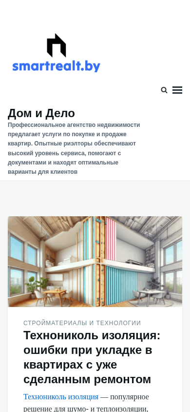 | Название / Заголовок | Дом и Дело - Профессиональное агентство недвижимости предлагает услуги по покупке и продаже квартир. Опытные риэлторы обеспечивают высокий уровень сервиса, помогают с документами и находят оптимальные варианты для клиентов |