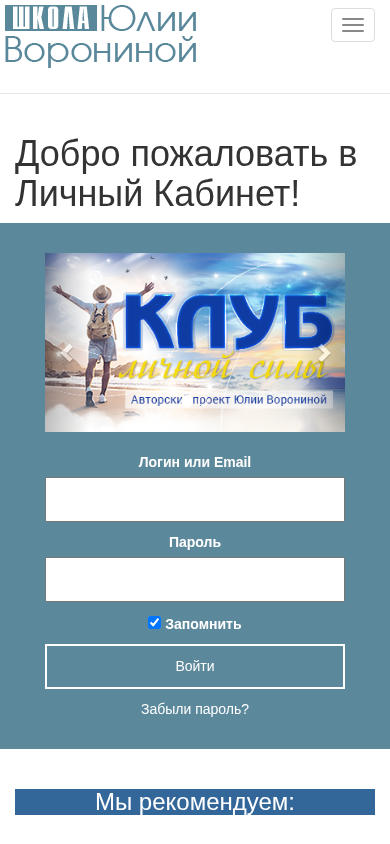 | AI-анализ | The portal "School of Magic by Julija Voronina" offers access to materials of the courses you are enrolled in. Here you will find a personal cabinet with information about the master, all products, a schedule of classes, and contacts. Welcome to the Personal Cabinet! To log in, enter your email and password you received upon registration. If you are not yet a client, we encourage you to rectify that situation! In the "ALL PRODUCTS" section in the top menu, you will find all our available courses and services, including free ones. In the "USEFULNESS" section, you will find valuable and necessary materials for beginning metaphysicians. Welcome to the School of Magic by Julija Voronina. Here you will find access to all paid products. To enter the personal cabinet, please enter your login and password, which you received upon registration. If you are not yet a client, |