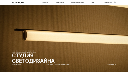 | AI-анализ | The web project "Mood Moon Lighting Design" is a studio specializing in lighting design for retail, homes, public spaces, and Horeca establishments. The studio offers services in lighting design, technical calculations, and production of custom light fixtures. The website is available in both Russian and English languages, and features a store section for purchasing products, a price list, and information on cooperation opportunities. The homepage displays a menu with various lighting and design-related topics, including recent projects, such as Viva Apartment, Iskra Restaurant, and Salt Restaurant, as well as articles on lighting design and its importance. The studio aims to create comfortable lighting that enhances both aesthetics and human well-being, recognizing that light plays a crucial role in shaping our perception of space and influencing our mood and focus. |
