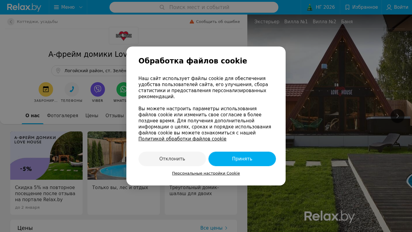 | SEO-описание | Коттеджи Love House (Лав Хаус) в Минске – цены за проживание, отзывы,возможность забронировать коттедж/усадьбу онлайн на Relax.by |