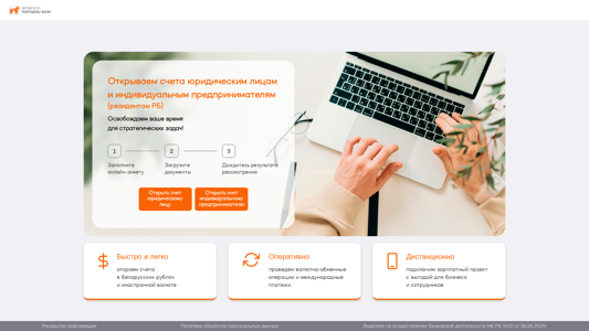 | AI-анализ | --- This online resource, titled "Анкетирование" (Surveying), invites juridical entities and individual entrepreneurs (residents of Belarus) to open accounts. It promises to save time for strategic tasks by streamlining the account opening process. Users can fill out an online application and upload documents. The result of the application review is pending. The website also offers quick and easy account opening in Belarusian rubles and foreign currency, efficient currency exchange operations and international payments, and a remote payroll project linkup beneficial for businesses and employees. The site discloses its personal data processing policy and banking license information from the National Bank of Belarus. (license no. 10 from 06.05.2025) The domain name is onboarding.bnb.by. |