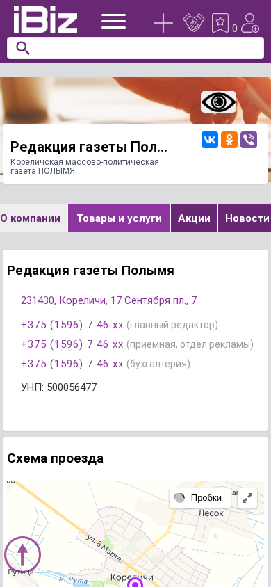 | Адрес | Редакция газеты Полымя - Кореличская массово-политическая газета ПОЛЫМЯ.. 231430, Кореличи, 17 Сентября пл., 7 |