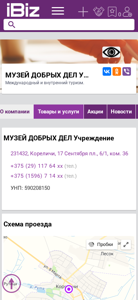 | Адрес | Объявления, Закупки, Вакансии, Видео, Отзывы, МУЗЕЙ ДОБРЫХ ДЕЛ Учреждение, 231432, Кореличи, 17 Сентября пл., 6/1 |