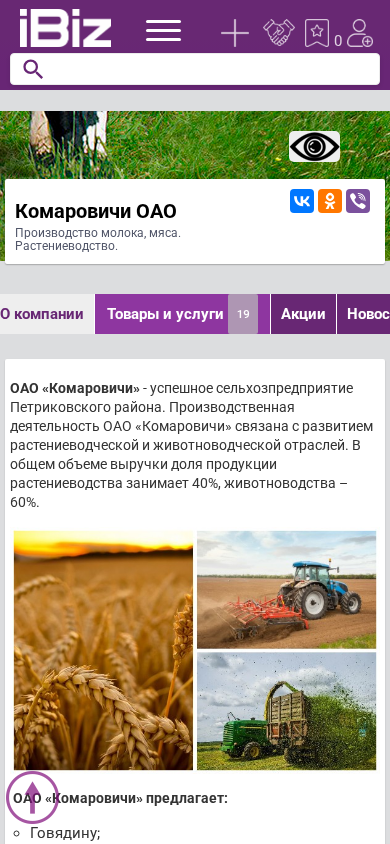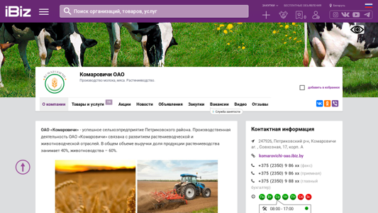 | Название / Заголовок | Комаровичи ОАО - Производство молока, мяса. Растениеводство.. 247926, , Комаровичи аг. , Совхозная, 17, корп. А |