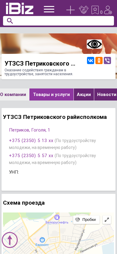 | Название / Заголовок | УТЗСЗ Петриковского райисполкома - Оказание содействия гражданам в трудоустройстве, занятости населения.. 0, Петриков, , Гоголя, 1 |