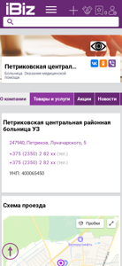 | AI-анализ | --- This online resource belongs to Petrikovskaya Centralny District Hospital (Petrikovskaya Tsentralnaya Rayonnaya Bolnica UZ) located at 5 Luначаrskogo Street, Petrikov, 247940, Belarus. The website provides information about the medical services offered by the hospital, including contact details and a map to aid visitors in finding the location. The hospital offers its services from Monday to Friday, from 8:00 am to 7:00 pm without lunch breaks. The website also features a section for company information, products and services, news, vacancies, videos, and customer reviews. The hospital can be contacted via phone numbers +375 (2350) 2 82 xx and +375 (2350) 2 82 xx. The Unified State |