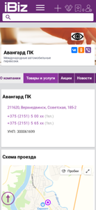 | AI-анализ | The portal avangardavto.ibiz.by is a Belarusian company specializing in international automobile transport services. The website provides a scheme for reaching the company located at 211620, Verhneдvinsk, Sovetskaya, 185-2. The contact information includes two phone numbers: +375 (2151) 5 00 xx and +375 (2151) 5 65 xx. The company's UNP number is 300061699. The site offers various services related to automobile transportation and features sections for news, announcements, vacancies, and customer reviews on social media platforms like VKontakte and Odnoklassniki. The company operates from Monday to Friday, 9:00 am to 6:00 |