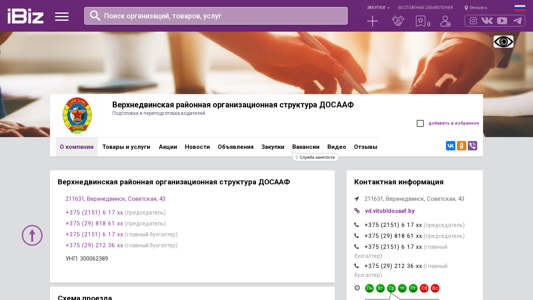 The web project "Verkhneдвинская районная организационная структура ДОСААФ - Подготовка и переподготовка водителей.." is a Belarusian domain based in Verhneдvinsk, with a physical address at Sovietskaya 43. This organization offers driving training and re-certification services for individuals. The website provides contact information, including phone numbers for the chairman and the chief accountant. The company's UNP number is 300062389. The site is listed under the categories "Autoshkoly, kursy vozhdeniya" (Autoshools, driving courses) and "Autoshkoly, kursy vozhdeniya v Verhneдvinskoye" (Autoshools, driving courses in Verhneдvinsk).
