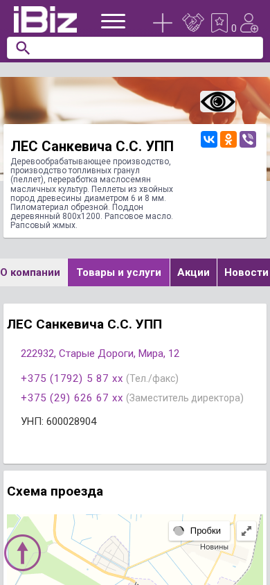 | Название / Заголовок | ЛЕС Санкевича С.С. УПП - Деревообрабатывающее производство, производство топливных гранул (пеллет), переработка маслосемян масличных культур. Пеллеты из хвойных пород древесины диаметром 6 и 8 мм. Пиломатериал обрезной. Поддон деревянный 800х1200. Рапсовое масло. Рапсовый жмых. . 222932, Старые Дороги, , Мира, 12 |