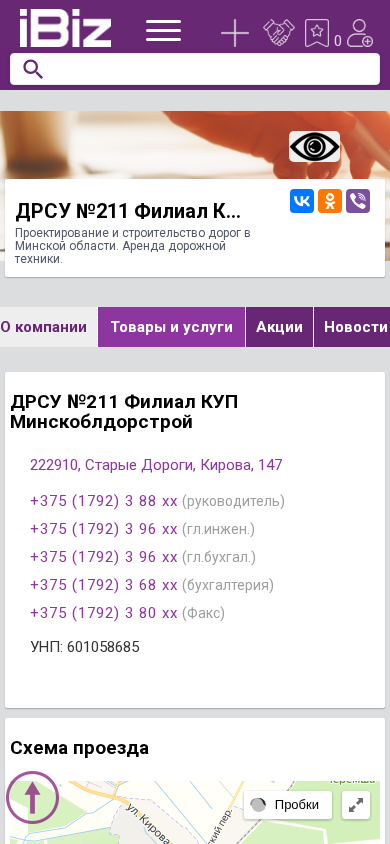 | Название / Заголовок | ДРСУ №211 Филиал КУП Минскоблдорстрой - Проектирование и строительство дорог в Минской области. Аренда дорожной техники.. 222910, Старые Дороги, , Кирова, 147 |
