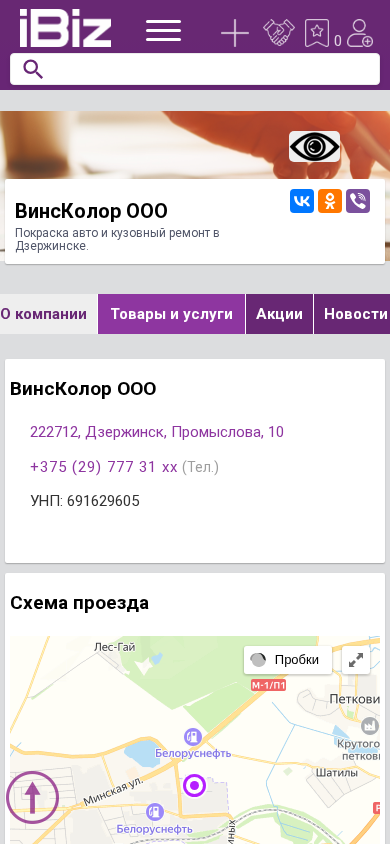 | Название / Заголовок | ВинсКолор ООО - Покраска авто и кузовный ремонт в Дзержинске.. 222712, Дзержинск, , Промыслова, 10 |