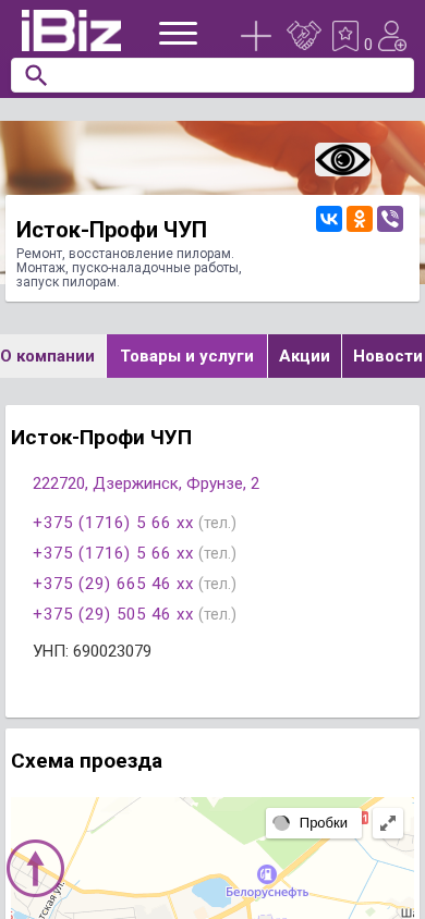 language: ru This online resource, titled "Исток-Профи ЧУП," offers services related to the repair, restoration, installation, and commissioning of pilings. The company is located in Dzerzhinsk, Belarus, specifically at the address given: Фрунзе, 2, 222720. The website includes a map for directions and multiple contact telephone numbers: +375 (1716) 5 66 xx, +375 (1716) 5 66 xx, +375 (29) 665 46 xx, and +375 (29) 505 46 xx. The company identification number is 690023079. The website is in the "Деревообработка