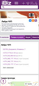 | AI-анализ | This online resource is a Belarusian company, Libra ЧУП, specializing in the production and sales of spare parts for timber harvesting machines R63-4Б, РК-1А, Р75, РПМ, as well as providing repair and service support for these machines. In addition, the company sells woodworking tools, such as saws, drills, and knives. The address and contact information for the company, including phone numbers and a fax number, are provided. The company's UNP number is 690033361. |