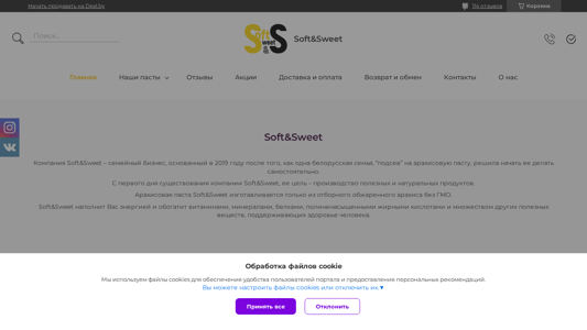 | AI-анализ | The website Soft&Sweet is an online store selling pasta products, including arahiosoa pasta, orechoive pasta, and various sets. The company, founded in 2019, focuses on producing natural and beneficial food items. Soft&Sweet's arahiosoa pasta is made exclusively from carefully selected roasted arahi beans without GMOs. The website offers a range of pasta types, such as "Mandarin Orange," "Classic," "Honey Chocolate," "Crunchy," and "Spicy," priced between 13.50 and 18.50 rubles per 350g. Customers can also purchase sets, such as "Popylar," priced at 69.50 rubles. The website provides contact information and details on delivery and return policies. |