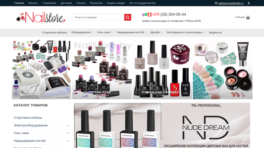 | SEO-описание | Интернет-магазин материалов и оборудование для наращивания и дизайна ногтей с доставкой по Беларуси. Гель-лаки, Стартовые наборы, базы, фрезы |