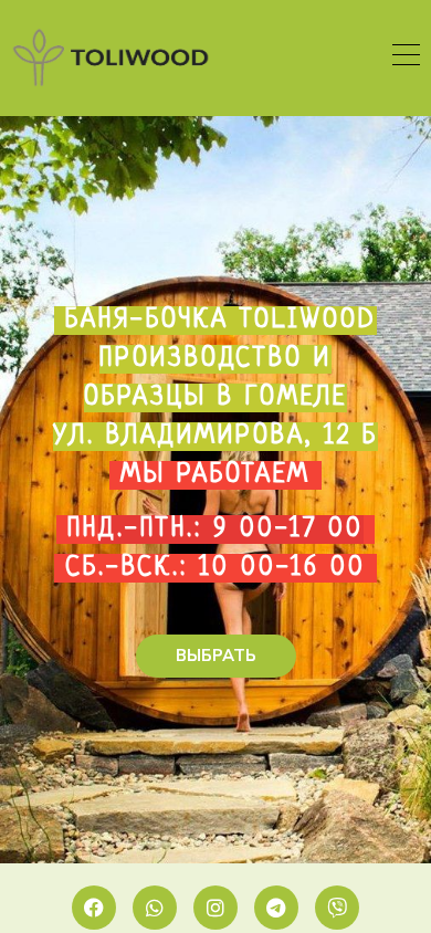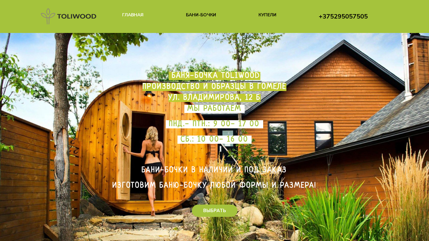 | SEO-описание | Выбрать и купить круглую, овальную, квадратную баню-бочку в Гомеле с доставкой по всей Беларуси выгодно по отличным ценам. Комфортные и уютные недорого. Собственное производство бань-бочек в Гомеле. Образцы по адресу: ул. Владимирова, 12б. +375 29 505 7 505 |