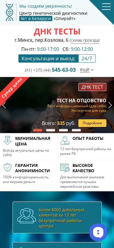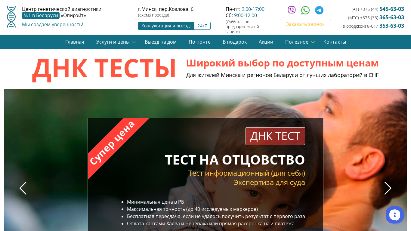 | Название / Заголовок | Отличная цена на ДНК тесты в Минске и Беларуси узнайте сколько стоит в Центре генетической диагностики "ОПИРЭЙТ" |