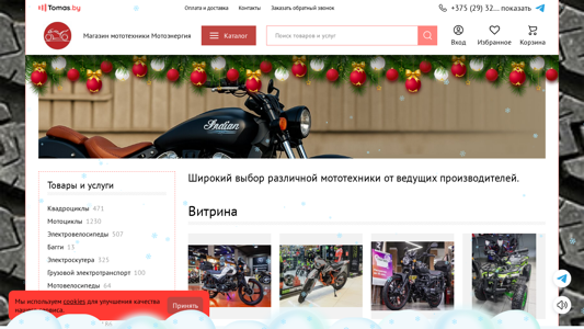 | AI-анализ | This website is an e-commerce platform for purchasing various types of motor technology products in Minsk, Belarus. Detailed information about OOO Mototechnology (Motoenergia) is provided. Keywords associated with the site include the company name, Minsk, and Belarus. The top words indicate the focus on buying motorcycles, motor technology, quads, electric transportation, and gardening equipment. The catalog offers a wide range of motor technology products from leading manufacturers. Prices for items listed include a Rockot Alpha Tourist M-12 motorcycle for 6,550 rub, a PROGASI PALMA 250 motorcycle for 2,900 rub, a Roliz Alpha Vertigo moped for 3,390 rub, and a Motoland 200 Wild Track Lux quad for 7,3 |