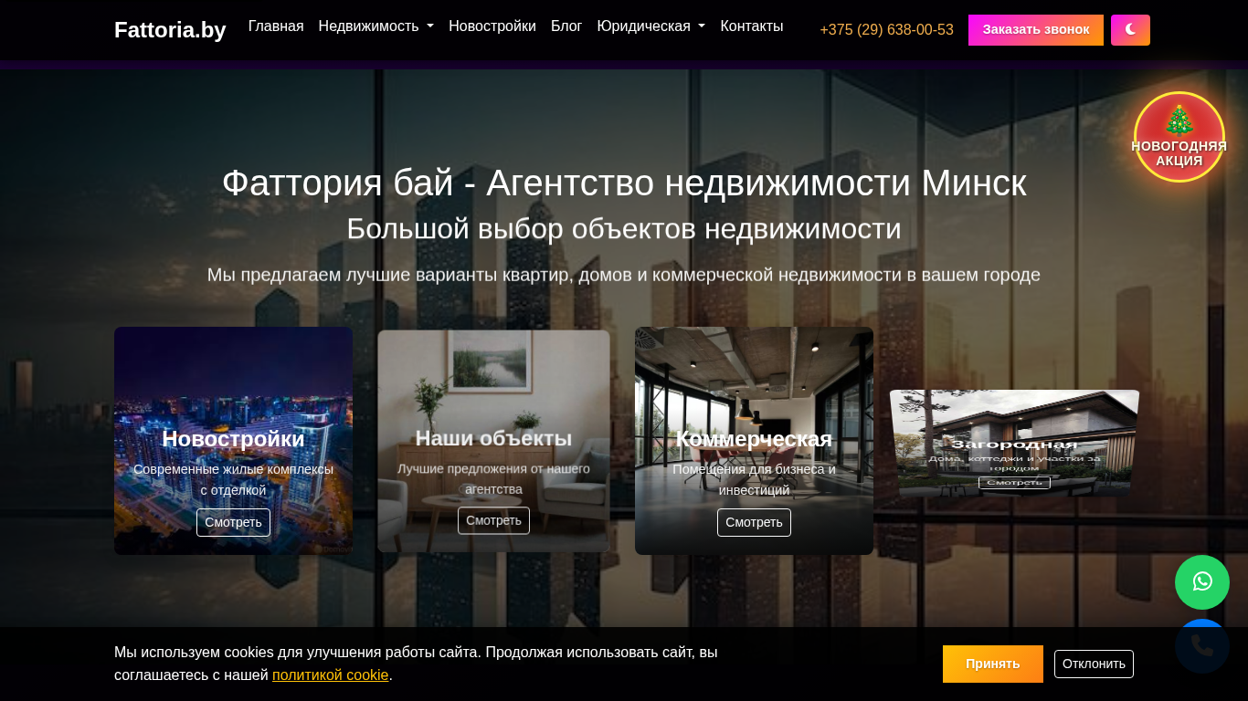 | SEO-описание | Фаттория бай - профессиональное агентство недвижимости в Минске. Продажа и аренда квартир, домов, коммерческой недвижимости. Лучшие предложения на рынке недвижимости Беларуси. |