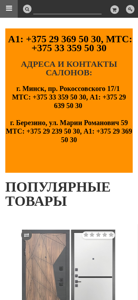 | AI-анализ | --- The web project "Beldoors.by" is an e-commerce platform for selling doors and furniture in Minsk, Belarus. The site offers a wide range of metal, oaked, laminated, and shoji-style doors at various prices. Users can purchase doors in various sizes, materials, and styles, including PVC doors and windows, and even find discounts and financing options such as credit cards or installment plans. The site also provides information on new products and promotions, as well as customer service contacts and delivery details. |