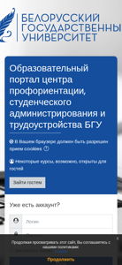 | Название / Заголовок | Образовательный портал центра профориентации, студенческого администрирования и трудоустройства БГУ: Вход на сайт |