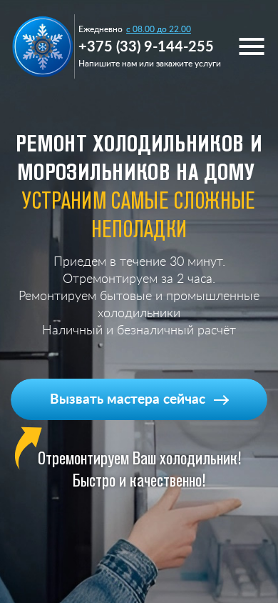 | Название / Заголовок | РЕМОНТ ХОЛОДИЛЬНИКОВ И МОРОЗИЛЬНИКОВ НА ДОМУ | Витебск и районы |