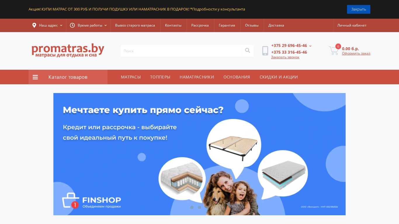 | SEO-описание | ✅ Официальный магазин матрасов в Минске от производителя. Быстрая доставка по Беларуси, гарантия до 7 лет, рассрочка. Закажите сейчас и получите скидку 15%! |