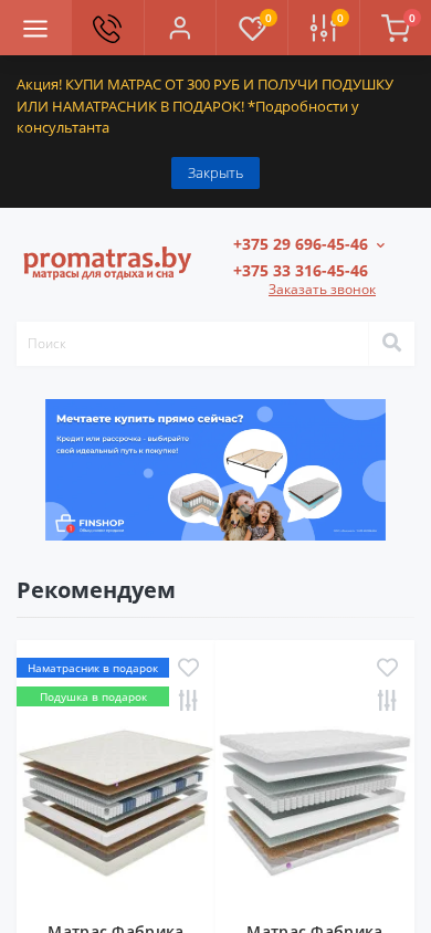 | AI-анализ | --- The website is an official mattress store in Minsk, Belarus, operated by the mattress manufacturer. It offers over 250 mattress models with quick delivery throughout Belarus, a warranty of up to 7 years, and financing options. Customers can purchase a mattress starting from 300 rubles and receive a pillow or a mattress topper as a gift. The store also provides information on delivery, contacts, payment methods, and working hours. Customers can make a call or place an order online. The catalog includes various mattress series such as Vegas, Relax, Smart, and Kids Special, along with different sizes and types, including memory foam, latex, and coil mattresses. |