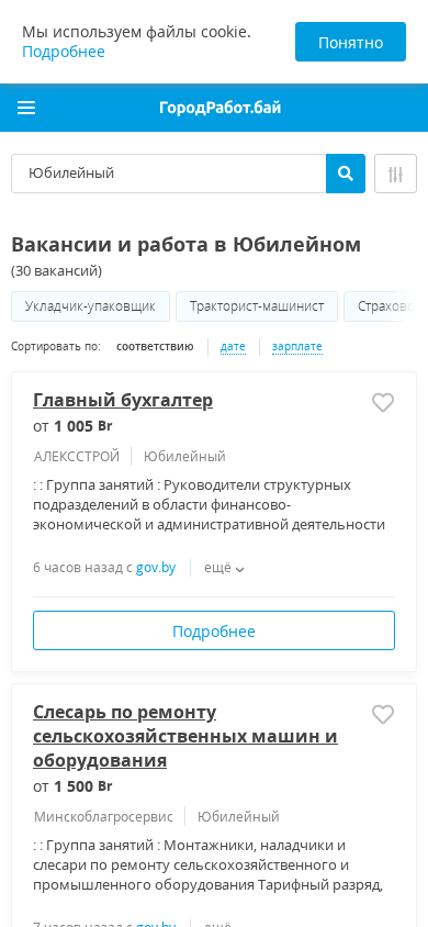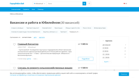 | Название / Заголовок | Вакансии и работа в Юбилейном | Поиск работы с ГородРабот.бай |