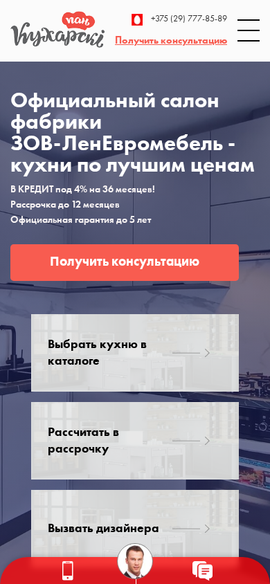 The website Pankuharski.by offers custom kitchens for sale in Minsk, directly from the manufacturer without dealer markups. The catalog includes various kitchen styles, such as modern, classical, and neoclassical, with configurations including corner, linear, and island designs. Material options include MDF-PVH Renolit, MDF-AGT, MDF-ramped, as well as plastic and LDSP materials. Techniques like acrylic, glossy, and matte finishes are also available. The site features information on pricing, contact details, and a catalog for customers to browse. The contact information includes hours of operation in Minsk and a phone number. Additionally, the site mentions financing options and discounts.