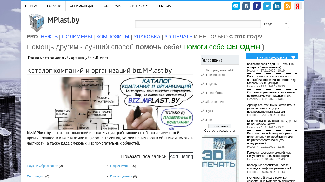 | Название / Заголовок | Каталог компаний biz.MPlast.by (нефтехимия, полимеры, 3dp) |