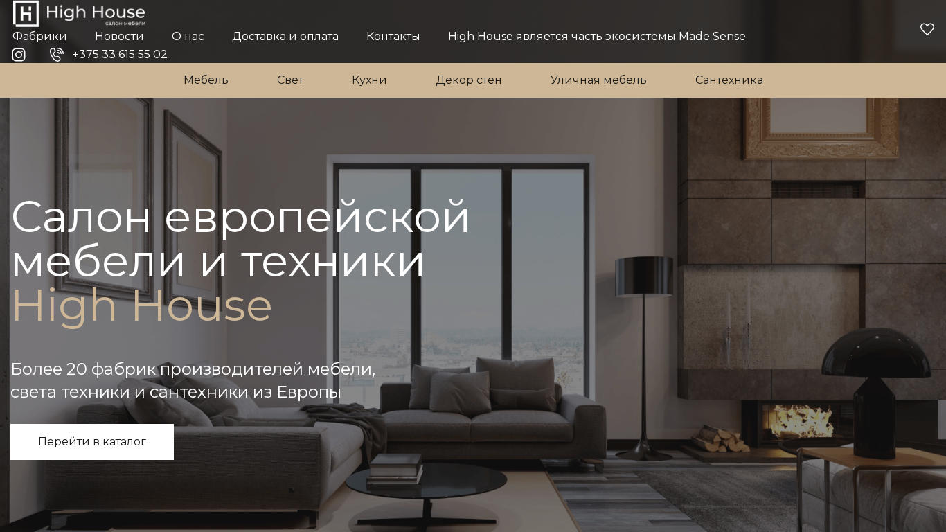 | AI-анализ | --- The portal High House is an elite European furniture and appliance marketplace featuring over 20 leading European manufacturers representing exclusive furniture, lighting fixtures, home appliances, and sanitary ware. High House offers a premium collection of European furniture and appliances for the perfect home. The website provides access to catalogs from various manufacturers and assists in selecting the desired furniture style and budget, as well as drafting a room plan and creating a 3D project for an additional fee. The catalog includes sections for furniture, lighting, kitchens, decor, outdoor furniture, and sanitary ware, with numerous photos for each category. The goods are available for purchase in Brest, Belarus, with delivery across Belarus from Europe. Brands such as Moretti Compact, Flou, Nolte Kuchen, Midj, Biba Salotti, Cattelan Italia, Tonin Casa, Bont |