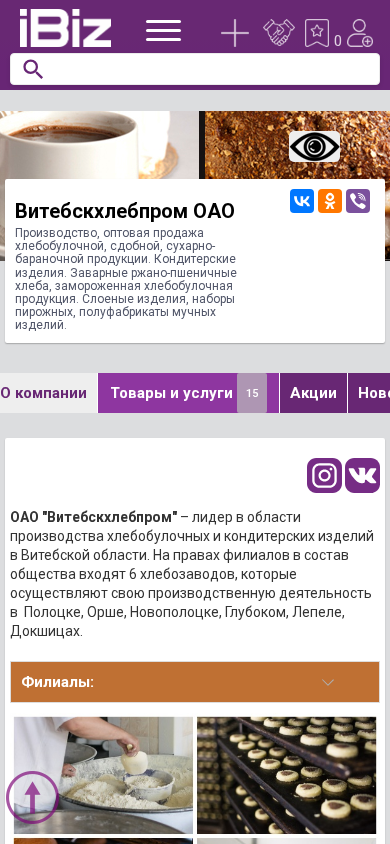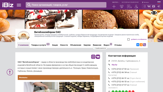 | AI-анализ | The web project "Vitebskkhlebprom OAO" is a Belarusian company specializing in the production and bulk sale of bread, bakery, confectionery, and pasta products. The company's offerings include various types of bread, frozen bakery products, layered goods, collections of pies, and half-finished baked goods. The company's headquarters and primary production facility are located at 5 Gorbachevsky Street in Vitsebsk, Belarus. The company operates multiple filial hlebozavods, including those in Gudok, Dokshytsy, Lepele, Novopolotsk, Orsha, and Polotsk, which also engage in production activities. The filials can be contacted using the provided phone numbers and addresses. |