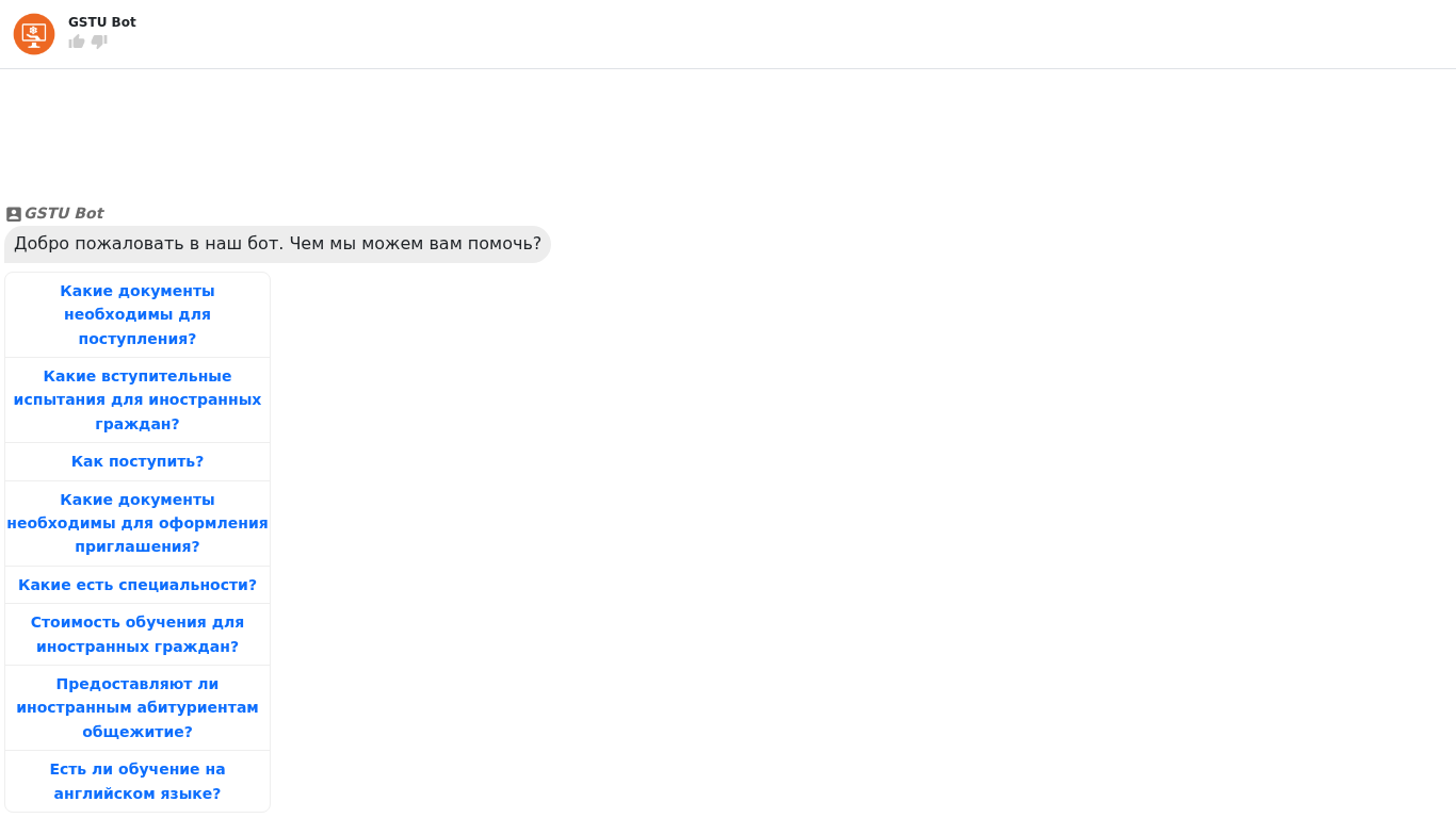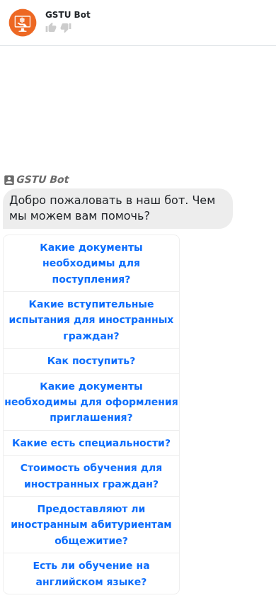 | SEO-лексика | gstu какие bot документы необходимы иностранных граждан есть ihelp cit добро пожаловать наш бот чем можем вам помочь поступления вступительные |