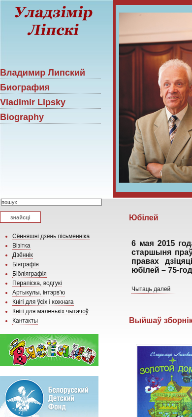 | AI-анализ | The portal lipskivs.by is dedicated to Vladimir Lipsky, a Belarusian writer and laureate of the State Prize of Belarus. The website provides information about Lipsky's biography, works, interviews, and articles. It also offers books for all ages and children, as well as a diary and a collection of essays. The author's works are described as living lessons of human kindness, love for nature and people. The website also features a new book by Lipsky titled "Under the Sun" and a collection of his best works called "The Golden House." The portal is rich in content and can be considered a pedagogical poem. It is suitable for anyone who is getting married, has children, wants to educate themselves, wants to be a good role model, or wants to pass on their inheritance to the next generation. The website invites everyone who has a stake in children |