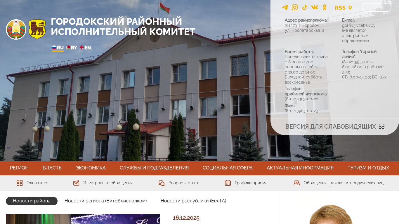 | AI-анализ | This website is the Russian version of the official website for the Gorodok District Administration in the Vitebsk region of Belarus. The website provides information about the district's administration, its departments and services, as well as news and events related to the region. Keywords associated with the website include 'городокского' (Gorodoksky), 'отдел' (department), 'района' (district), 'профилактика' (prevention), 'информация' (information), 'услуги' (services), and 'районный' (district). The website also mentions various government and administrative entities, such as 'государственное учреждение' (state institution), 'работы' (works), 'службы' (services), and 'районе' (district). The website contains a |