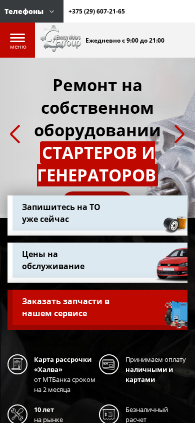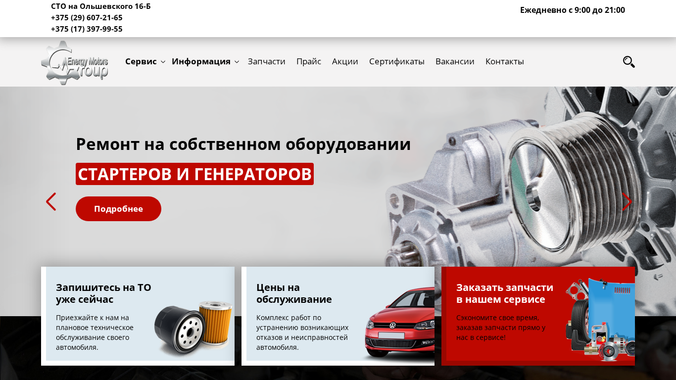 | SEO-описание | ЭнерджиМоторс-Груп – станция технического обслуживания автомобилей, занимается ремонтом и обслуживанием автомобилей Немецкого и Японского производства. |