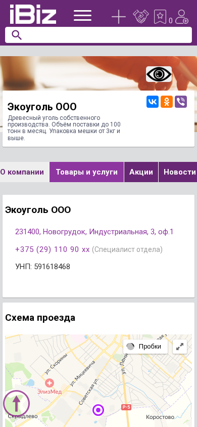 | Название / Заголовок | Экоуголь ООО - Древесный уголь собственного производства. Объём поставки до 100 тонн в месяц. Упаковка мешки от 3кг и выше.. 231400, Новогрудок, , Индустриальная, 3, оф.1 |