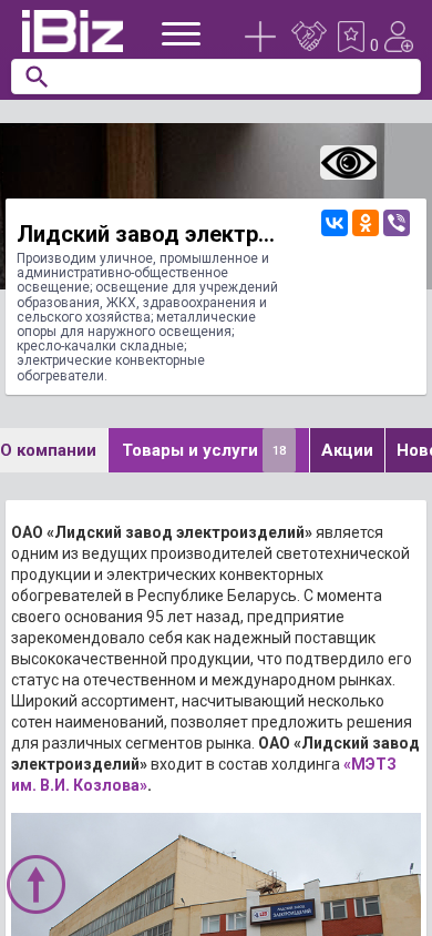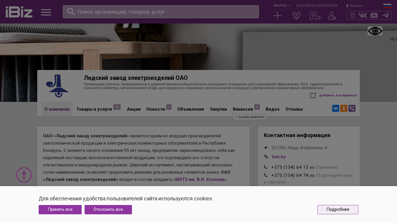 | AI-анализ | <!---------------------------------------------------> This website is for Lidsky Zavod Electroizdelii OAO, a Belarusian company located at Fabrichnaya 4, 231300, Lida. The company specializes in producing outdoor, industrial, and public-community lighting; lighting for educational institutions, utilities, healthcare, and agriculture; metal supports for outdoor lighting; folding chair-rockers; and electric convection heaters. The website provides information on the company, its products and services, and contact details. Keywords associated with the site include 'electrotechnical products', 'purchases', 'announcements', and 'company'. |