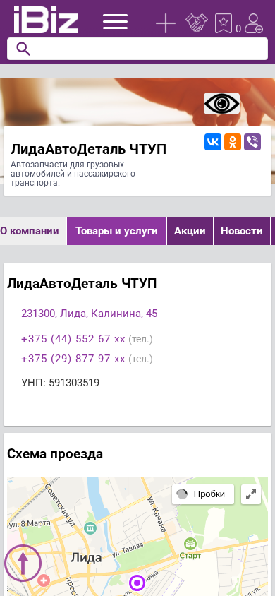 | Название / Заголовок | ЛидаАвтоДеталь ЧТУП - Автозапчасти для грузовых автомобилей и пассажирского транспорта.. 231300, Лида, , Калинина, 45 |