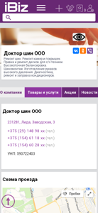 | AI-анализ | This online resource is a website for Doctor Shin OOO, a business located in Lida, Belarus, at Zavodskaya 3. The company specializes in the repair and balancing of tires, as well as the repair and production of high-pressure hoses. They offer tire mounting services and diagnostic, repair, and refilling of conditioners. The website also includes information on how to contact the company, including phone numbers and a map for easy location. The business hours are listed as Monday through Saturday, 8:00 AM to 5:00 PM, with no breaks for lunch. The domain is registered to OOO "AIBIZ MEDIA" - a catalog of businesses and organizations in Belarus. |