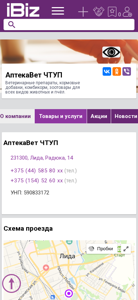 | Название / Заголовок | АптекаВет ЧТУП - Ветеринарные препараты, кормовые добавки, комбикорм, зоотовары для всех видов животных и пчёл.. 231300, Лида, , Радюка, 14 |