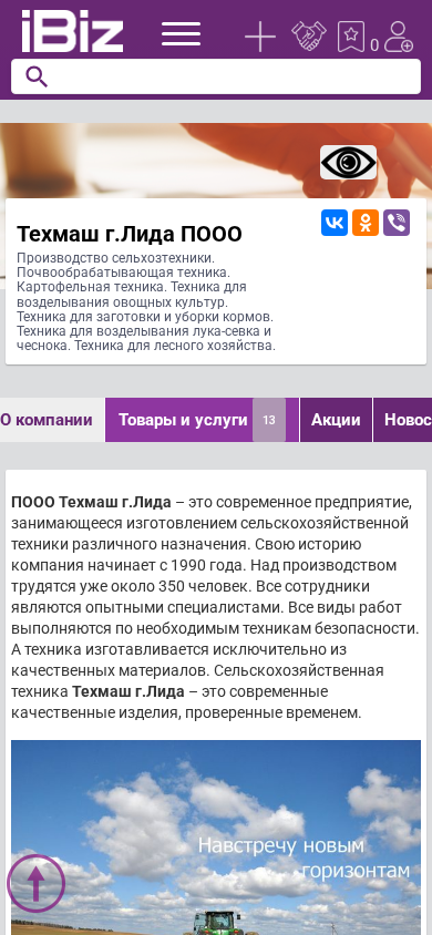 The portal Tehmasg.ibiz.by is a Belarusian manufacturing company producing a wide range of agricultural machinery. Founded in 1990, the company now employs around 350 experienced specialists and follows strict safety protocols. Their product line includes equipment for soil preparation, potato technology, vegetable cultivation technology, harvesting and corning equipment, onion and garlic cultivation technology, and forestry equipment, among others. A significant portion of their output is exported to countries within the CIS and beyond. Tehmasg.ibiz.by has established a reputation as a reliable partner and manufacturer of high-quality agricultural machinery.