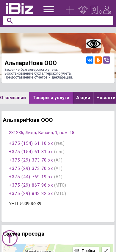 SEO-описаниеАльпариНова ООО - Ведение бухгалтерского учета. Восстановление бухгалтерского учёта. Предоставление отчетов и деклараций. . Схема проезда, контактные телефоны, адрес компании АльпариНова ООО. 231286, Лида, , Качана, 1, пом. 18