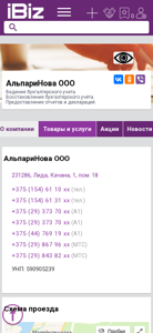 This online resource belongs to AlpariNova OOO, a company located in Limida, Belarus, with the address Качана, 1, пом. 18. The primary focus of the website is providing bookkeeping services, including the restoration of bookkeeping records and the delivery of reports and declarations. The top words associated with the site include 'услуги' (services), 'тел' (phone), 'без' (without), 'объявления' (announcements), and 'бухгалтерские' (bookkeeping). The contact information for the company includes multiple phone numbers and an address. The website also features a map and information on how to get there. The business hours are listed as Monday to Friday from 9:00 to 18:00 without lunch, and weekends are marked as holidays. The company is categorized under bookkeeping